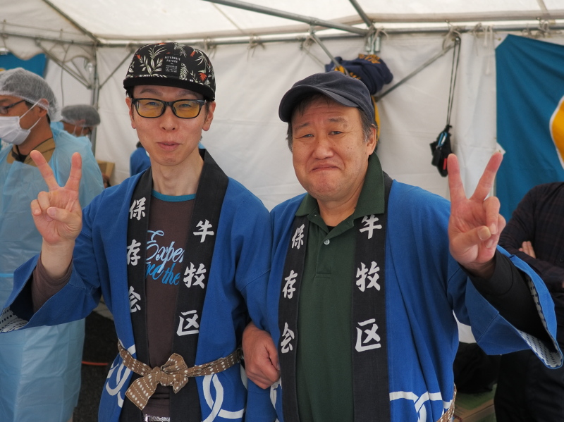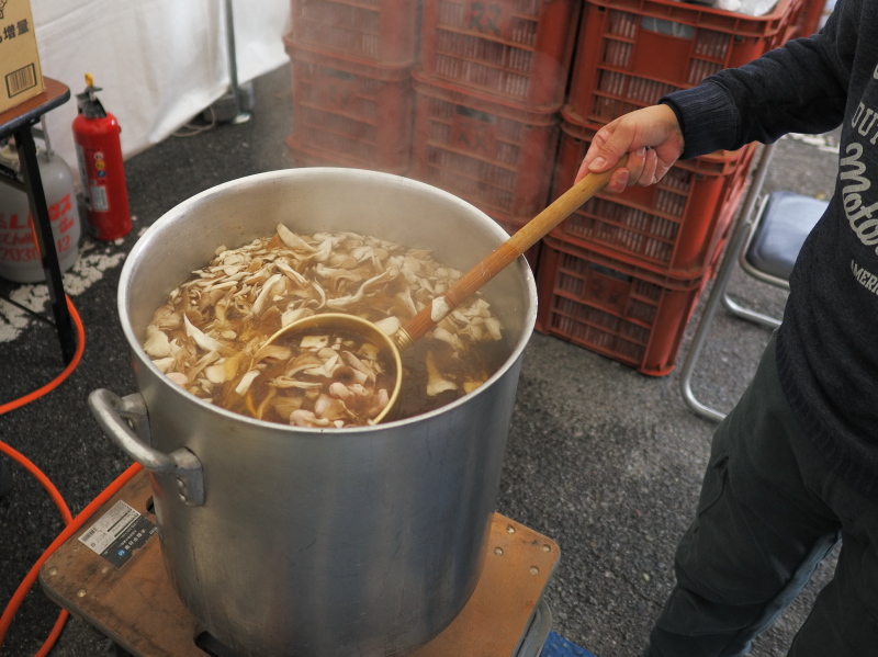 牛牧きのこ倶楽部の皆さんは朝からきのこ汁を仕込み中